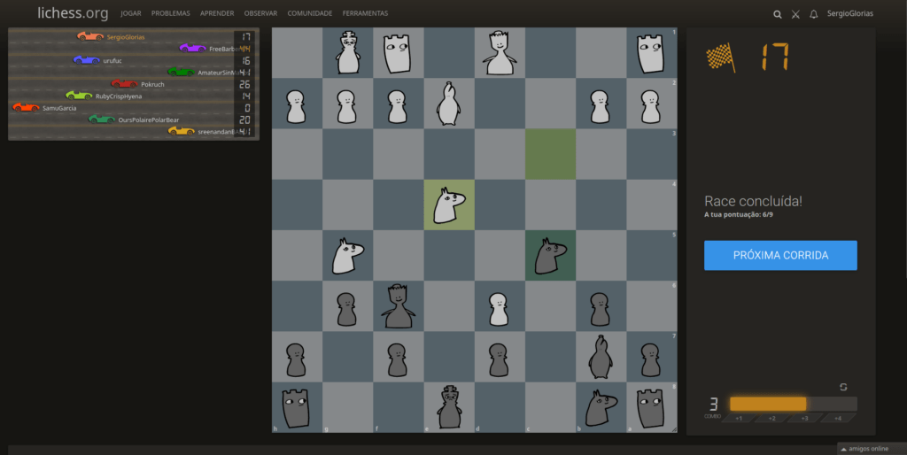 Estava eu vendo algumas livestreams que se joga uns Puzzle Racer no Lichess. E uma coisa que eles gostam é mostrar na live a pista de corrida, mas para isso eles têm que diminuir o tabuleiro só para mostrar a pista.